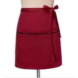 酒紅色帶黑邊口袋半圍裙 繫帶腰圍裙 員工專業廚房及餐廳制服