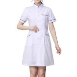 · Stand collar and fitted waistline cut to enhance a dignified demeanour