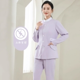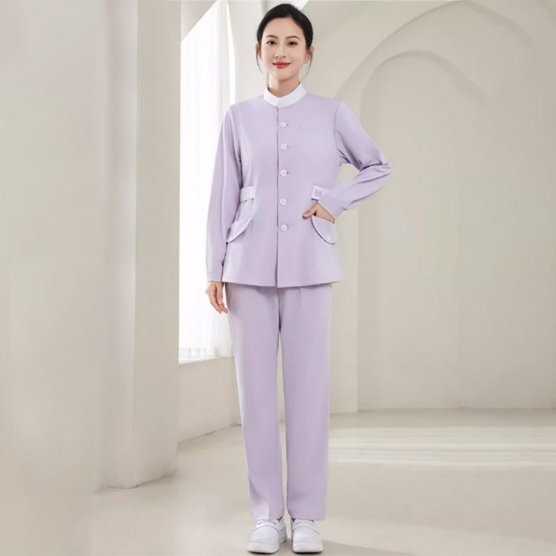 女士淺紫色護士服套裝,長袖帶口袋專業醫療工作服,護士專用護理制服