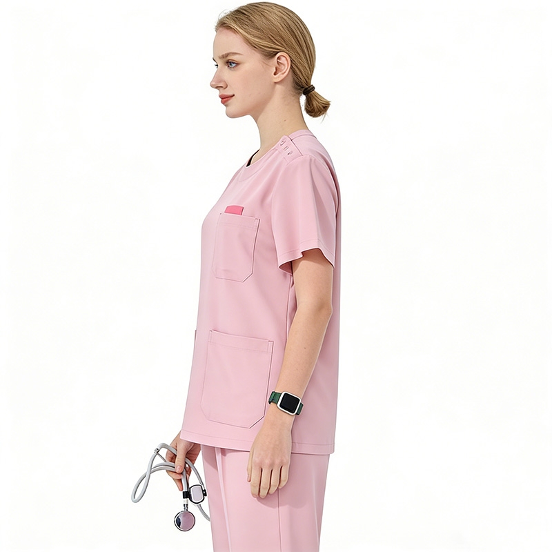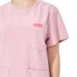 女士粉色護士制服,護理人員襯衫,帶有紐扣和口袋