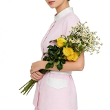 ·短袖 + 收腰設計兼顧季節適配性與身形修飾,讓工作行動更自如