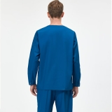 帶口袋專V領制服套裝,長袖上衣和褲子藍色側邊按扣設計