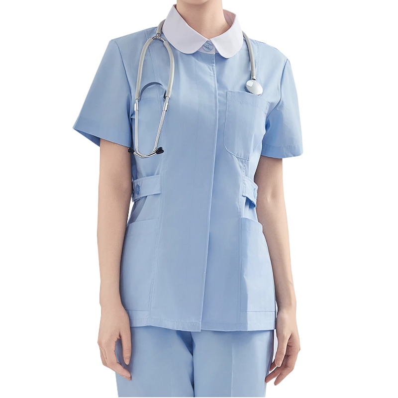醫護制服女短袖,淺藍色護士服多口袋設計,透氣速幹醫院診所工作服
