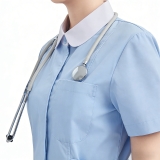 立領護士服套裝, 淺藍撞色邊設計,護理人員修身工作制服