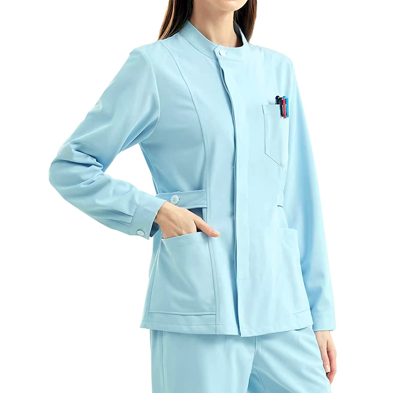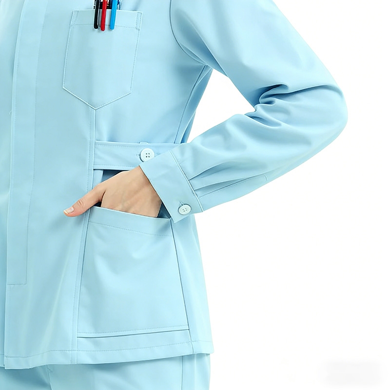 專業醫護工作服,淺藍色長袖護士服,帶口袋設計醫生制服套裝