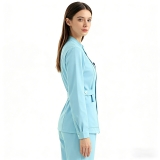春秋長袖款淺藍色長袖工作服,女士立體剪裁多口袋護工職業套裝