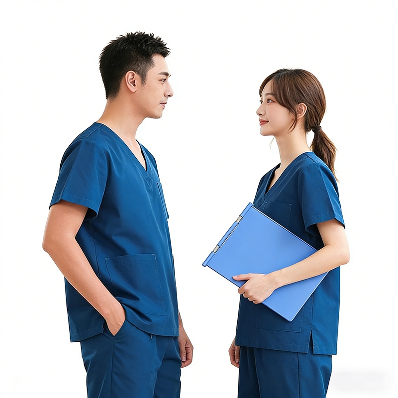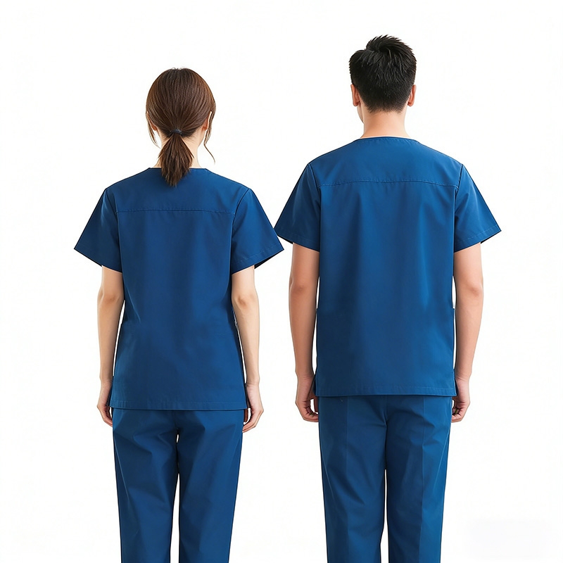 男女通用醫用制服套裝,寶藍色外科 scrub 服帶口袋,診所與醫院工作人員舒適穿搭