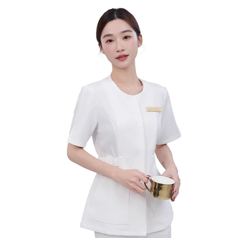 服務行業白色制服,收腰短袖醫護套裝,白色收腰短袖制服 醫院 / 康養/ 家政人員工衣