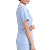 護理機構專業工作裙,夏季淺藍色醫護職業裝,娃娃領撞色短袖護士服