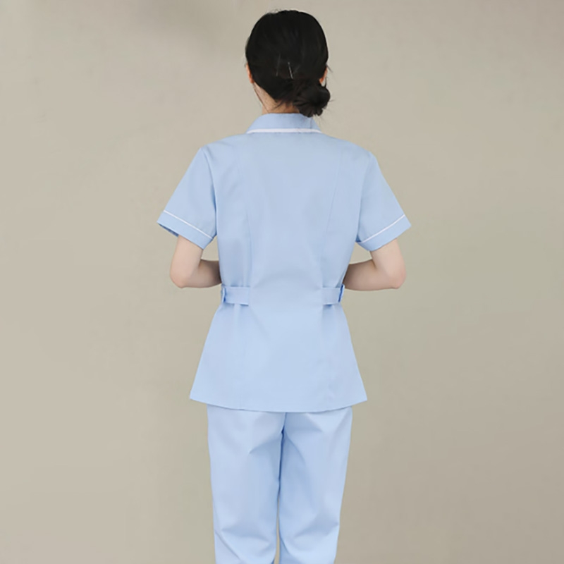 女款醫護工作服,淺藍色短袖帶白邊護理衣服,舒適透氣醫院老人院護理制服套裝