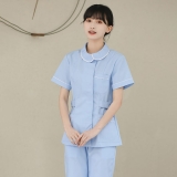 護理機構專業工作裙,夏季淺藍色醫護職業裝,娃娃領撞色短袖護士服