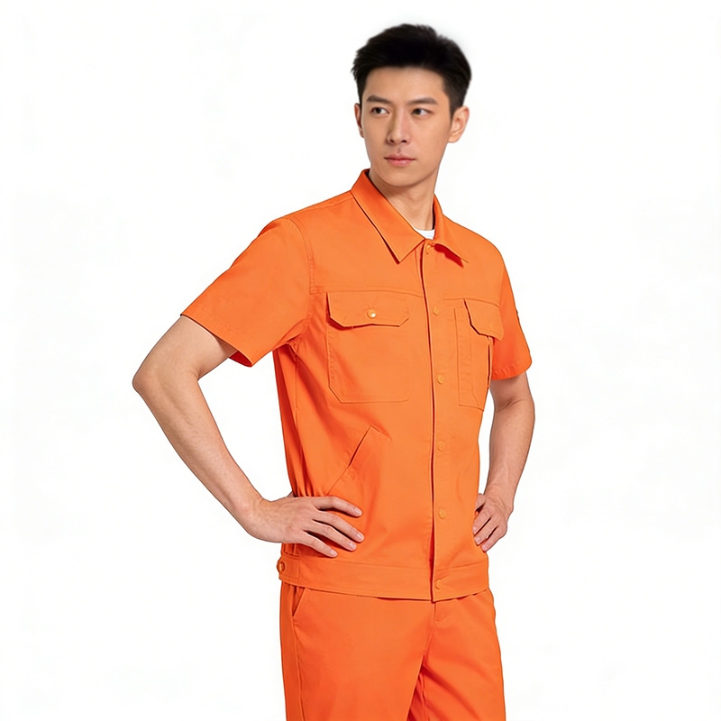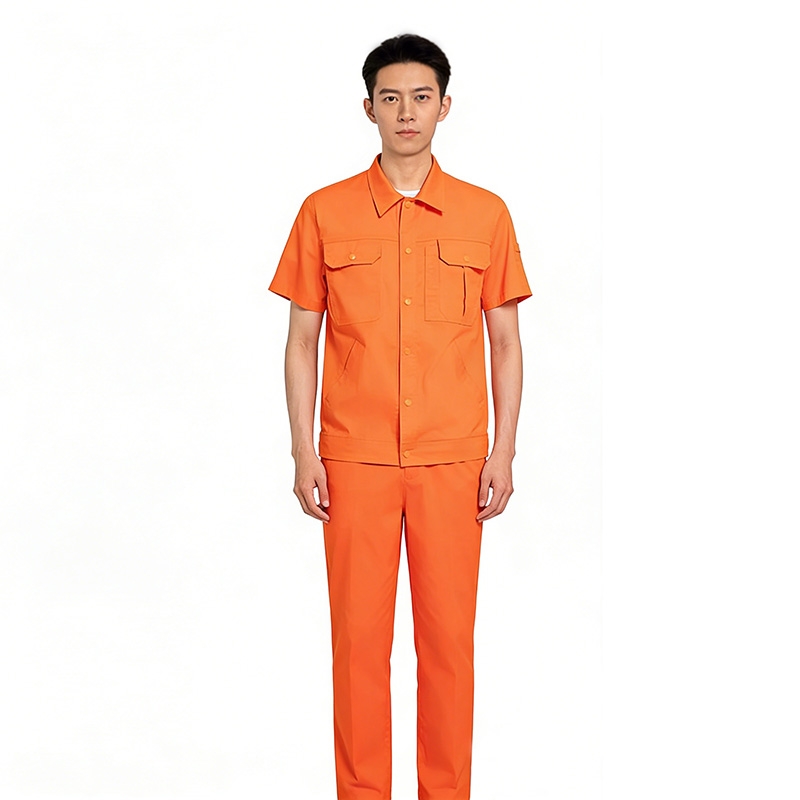 高辨識度橙色短袖工作服套裝 男士工裝制服 工程戶外作業勞保服 夏季透氣款