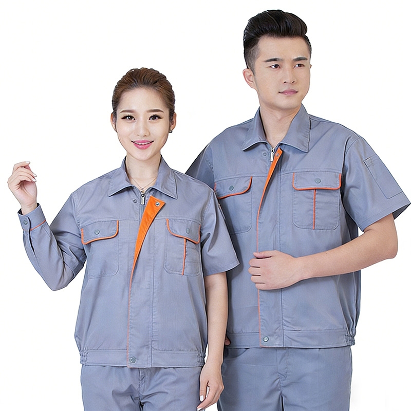 夏季作業 吸汗透氣耐磨服 定製灰橙邊短袖套裝