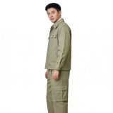 拉鍊 + 多口袋設計 卡其色長袖工裝套裝