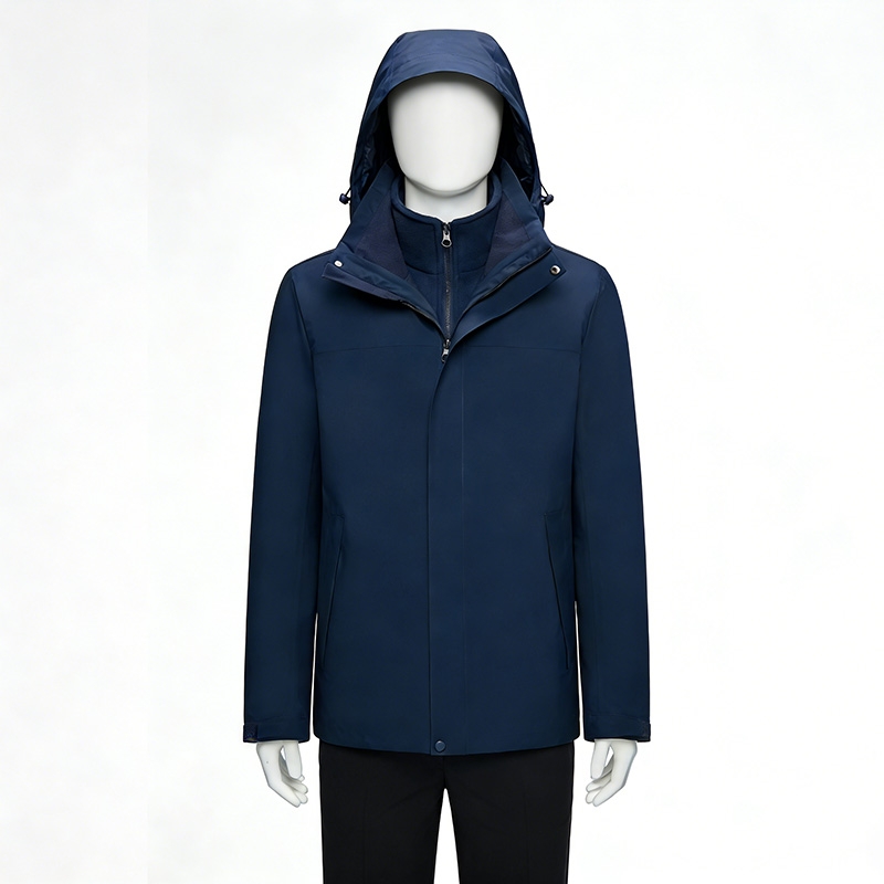 設計風格:採用沉穩的藏青色,可拆卸連帽 + 雙拉鍊設計,風格簡約專業,適配戶外通勤、輕商務及複雜天氣場景。