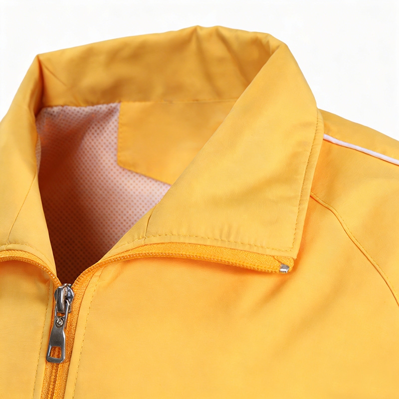 設計風格:採用明亮的暖黃色,簡約翻領 + 全拉鍊設計,搭配肩部白色反光條點綴,風格活力醒目,適配戶外通勤、團隊活動及夜間出行等場景。