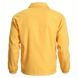 這是一款亮黃翻領防風外套,是兼具活力感與實用性的百搭單品。