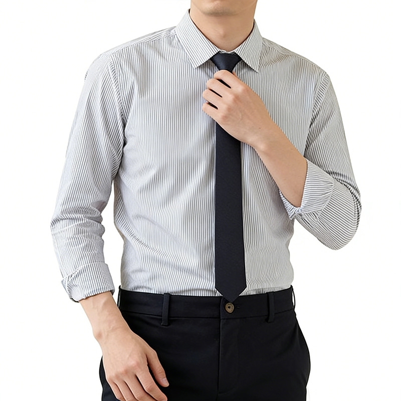 團隊定制:可作為企業員工、商務接待崗位的統一工裝襯衫,白灰細條紋提升團隊專業度與清爽感。
