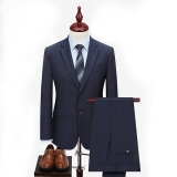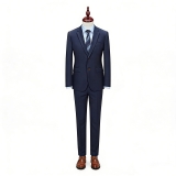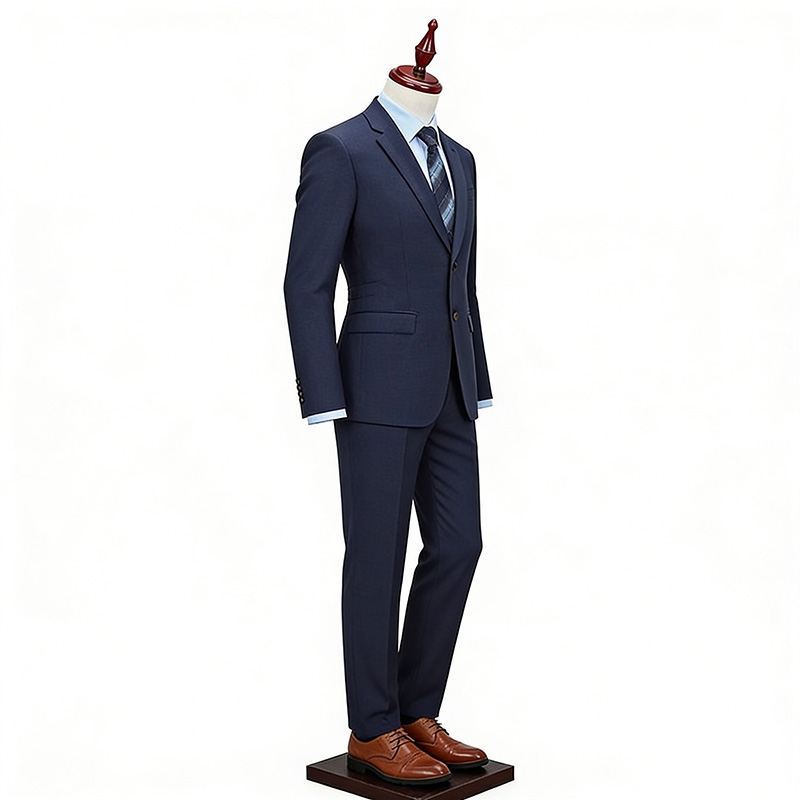 這是一套藏青色商務正裝西裝,是兼具專業感與質感的職場必備單品。
