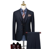 這是一套藏青色商務三件套西裝,是兼具精緻感與專業感的高階職場及正式場合單品。