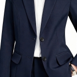 這是一套藏青色女士商務西裝套裝,是兼具專業感與適配性的職場必備單品。