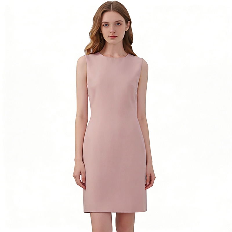 設計風格:採用柔和的裸粉色,圓領 + 無袖直筒版型,簡約利落,風格清新雅致,適配春夏職場通勤、商務休閒及輕正式社交場景。