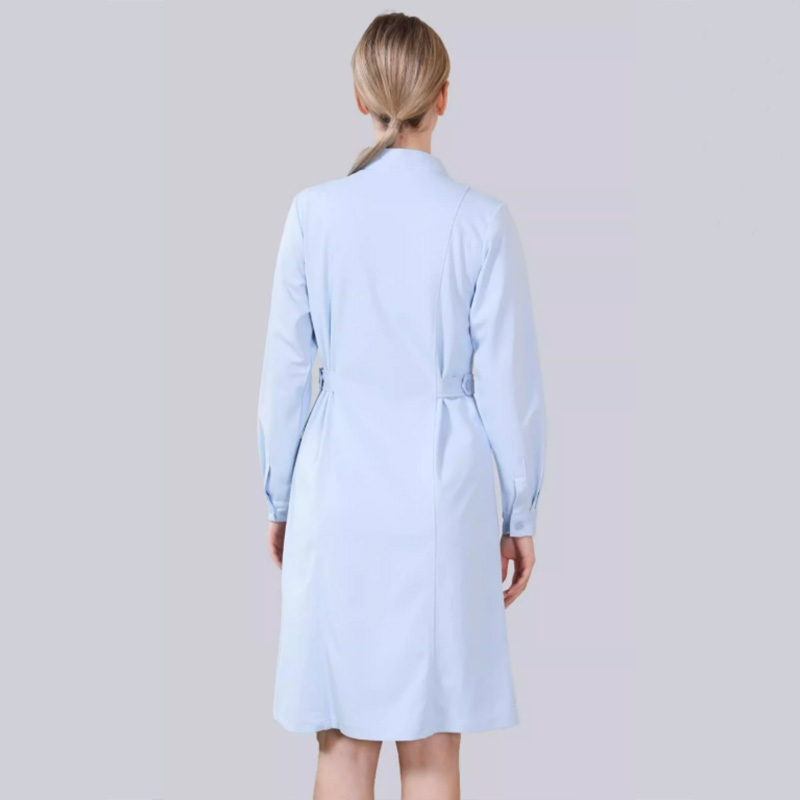 立領長袖護士服連衣裙,單排扣scrub大褂