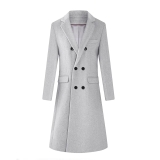 細節亮點:雙排釦設計增加服裝的復古感與正式感;西裝領設計可拉長頸部線條,搭配襯衫或高領毛衣時造型感更強;中長款版型可覆蓋臀部,提升保暖性與修飾身材效果;淺灰色比黑色更柔和,適配各類膚色與內搭組合,通用性強。
