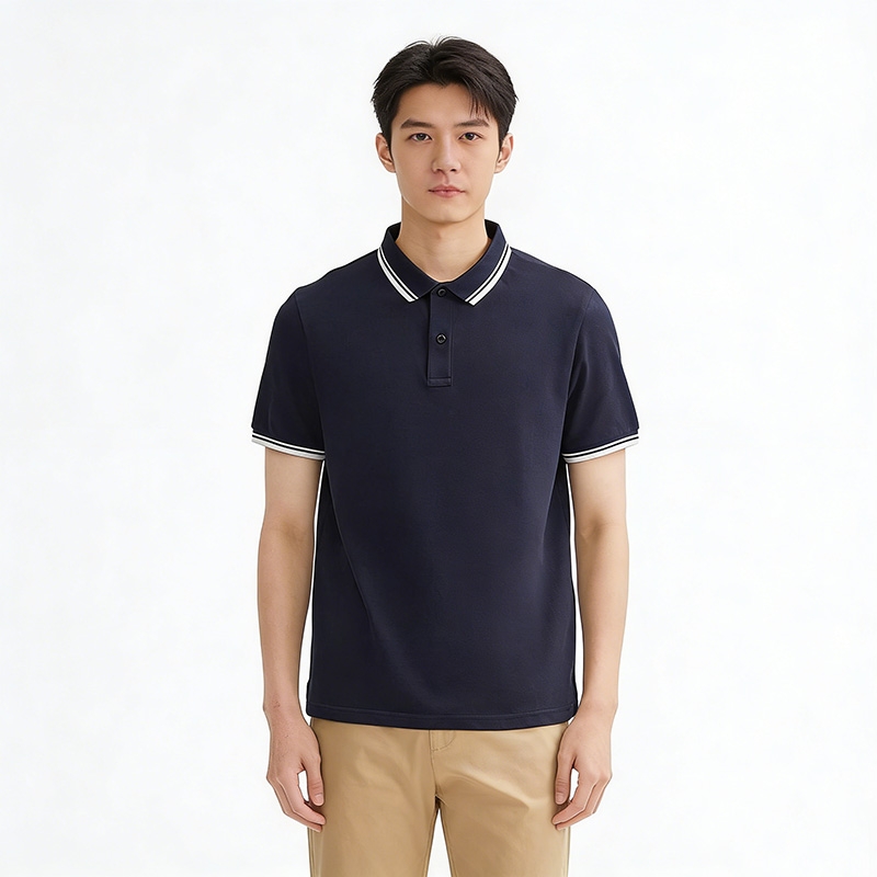 材質結構:採用高支棉珠地網眼面料,兼具透氣性與挺括感,穿著清爽且不易起皺;領口與袖口採用雙針包邊工藝,耐洗不變形,延長穿著壽命。