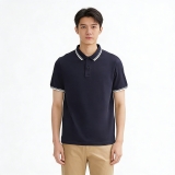 設計風格:採用沉穩的藏青色作為主體,搭配白色撞色包邊的翻領與袖口細節,版型修身利落,既保留了 Polo 衫的經典商務屬性,又通過撞色設計增添精緻層次,適配日常休閒與輕商務場景。