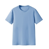 設計風格:採用低飽和度的霧霾藍色,經典圓領 + 短袖剪裁,無多餘裝飾,風格簡約乾淨,適配日常休閒、運動及打底等多元場景。