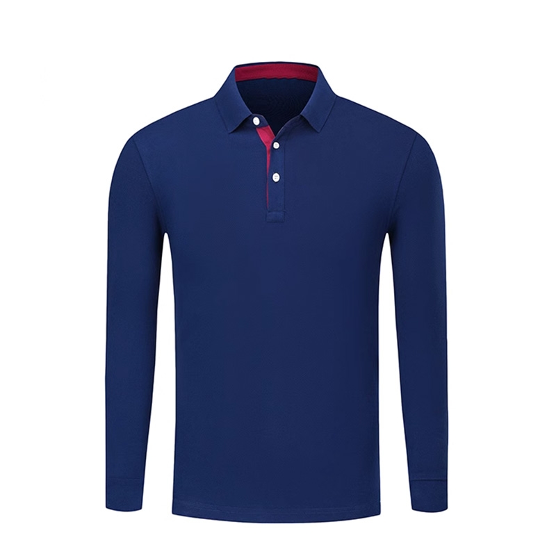 細節亮點:兩粒扣設計可靈活調節領口鬆緊,適配不同頸部圍度;長袖設計適配春秋季溫差,可單穿或作為內搭;撞色領內細節自帶視覺焦點,支援刺繡或印刷定制 Logo,適配團隊服、商務工裝等批量需求。