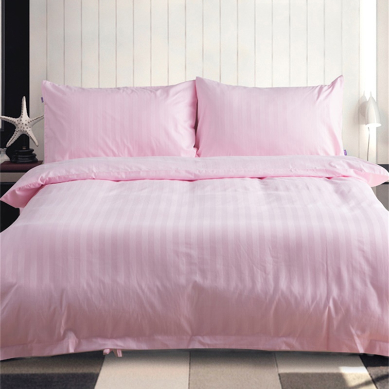 熱銷粉色條紋棉質牀品套件 柔軟被套枕套 成人臥室舒適睡眠套裝