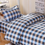 藍棕配色牀品 經典格紋 易洗耐用睡眠套裝