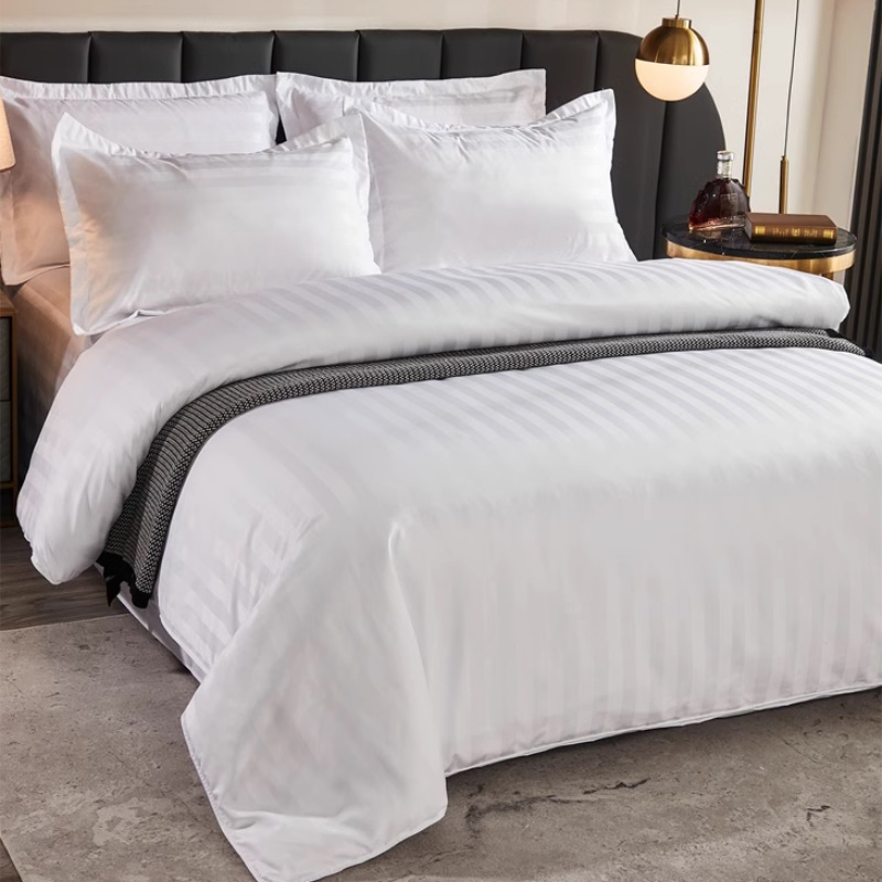 白色條紋牀品套件 精緻條紋設計 臥客臥高端裝飾
