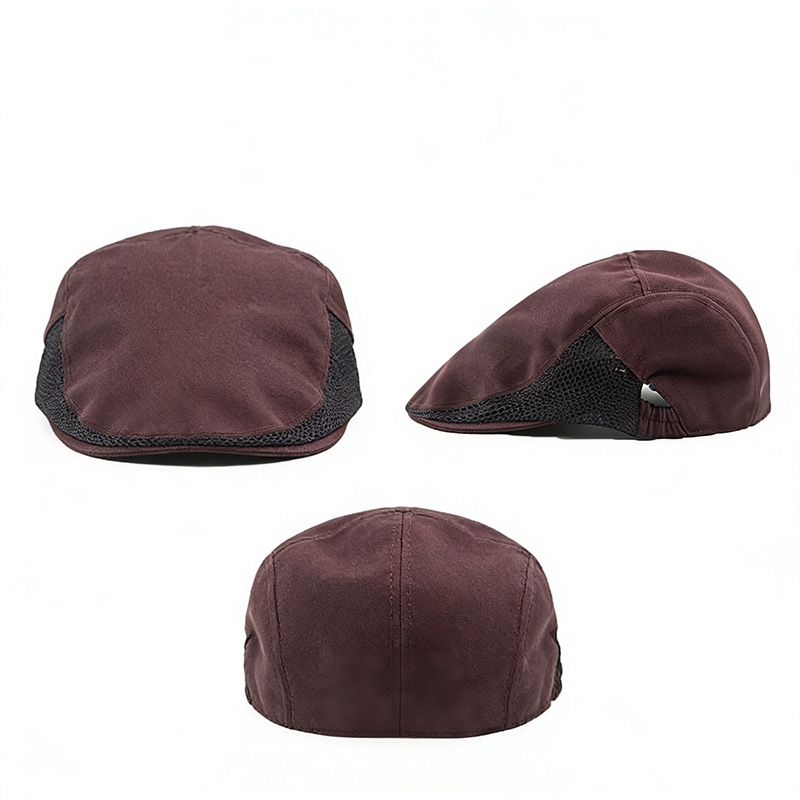 棕色帶網面餐飲廚師帽 可調節廚房貝雷帽 食品服務業舒適頭飾