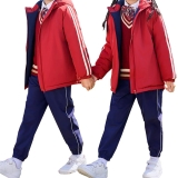 學童紅色拼色連帽校服外套 深藍色運動長褲 秋冬季運動套裝