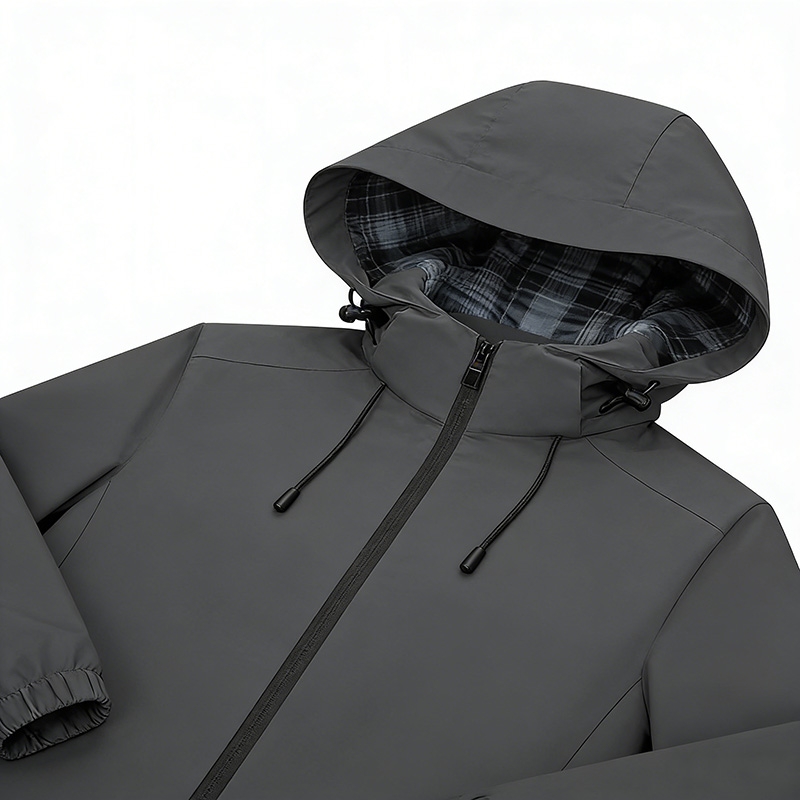 Design Style: Features a sophisticated dark gray color with a minimalist hood and full-zip closure, free of extra decorations for a sleek, timeless look. It suits daily commuting, light business, and outdoor scenarios.
