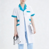 ·Contrasting colour piping: White body with turquoise trim (collar/cuffs/pockets) lends a contemporary edge to traditional medical attire.