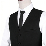 This is a black suit waistcoat, a classic and practical layering piece for professional and formal occasions.