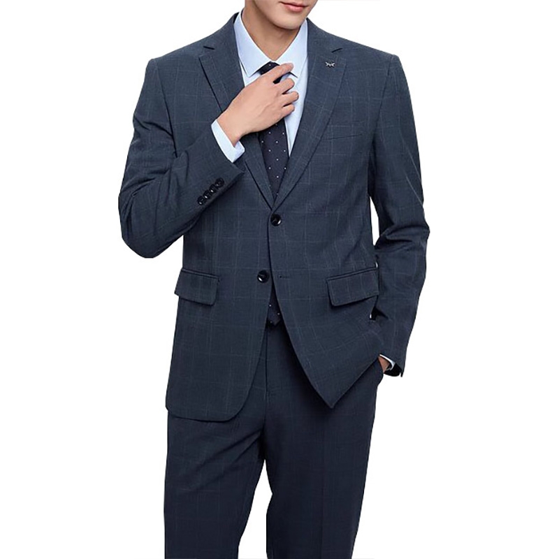 Design Style: Features a classic navy base with a subtle checkered pattern, a notch lapel, and two-button single-breasted closure, and a slim, tailored fit for a polished, retro look. It suits office commutes, business meetings, and formal social events.