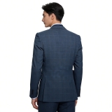 This is a navy checkered business formal suit, a sophisticated item for professional and formal occasions that balances retro style and professionalism.
