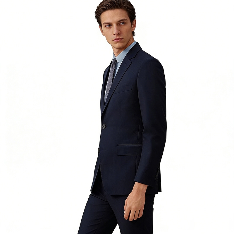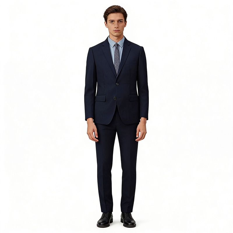 Detail Highlights: The jacket has flap pockets and a breast pocket for accessories or small items; the trousers are straight-cut for both practicality and style; the entire suit supports customization for a perfect fit; navy blue complements all skin tones and shirt-tie combinations, making it highly versatile.