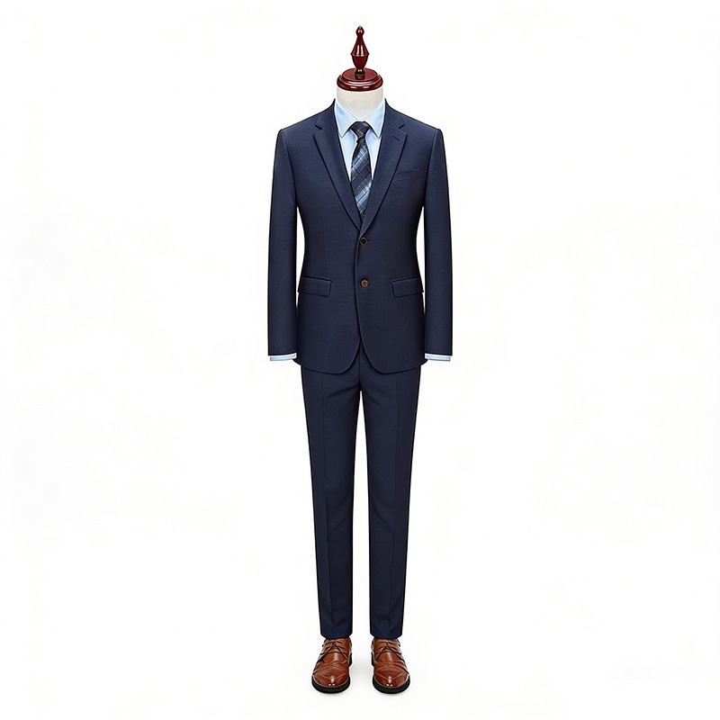 Design Style: Features a classic navy blue color with a notch lapel and two-button single-breasted closure, and a slim, tailored fit for a sophisticated, timeless look. It suits business meetings, office commutes, and formal social events.