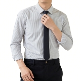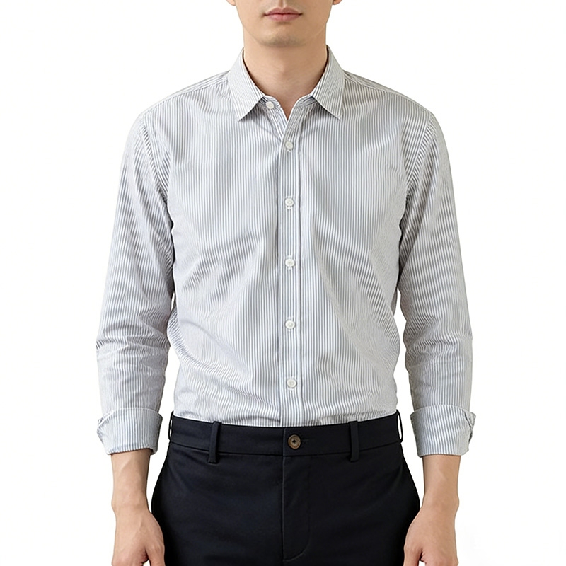 Team Customization: Perfect as a unified uniform shirt for corporate employees and reception staff, with white-grey fine stripes enhancing team professionalism and freshness.