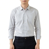 This is a men's white-grey fine-stripe small square-collar long-sleeve shirt, an essential item for professional and daily wear that balances freshness and versatility.
