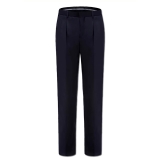 New navy single-breasted women‘s blazer + trousers, premium workwear ensemble