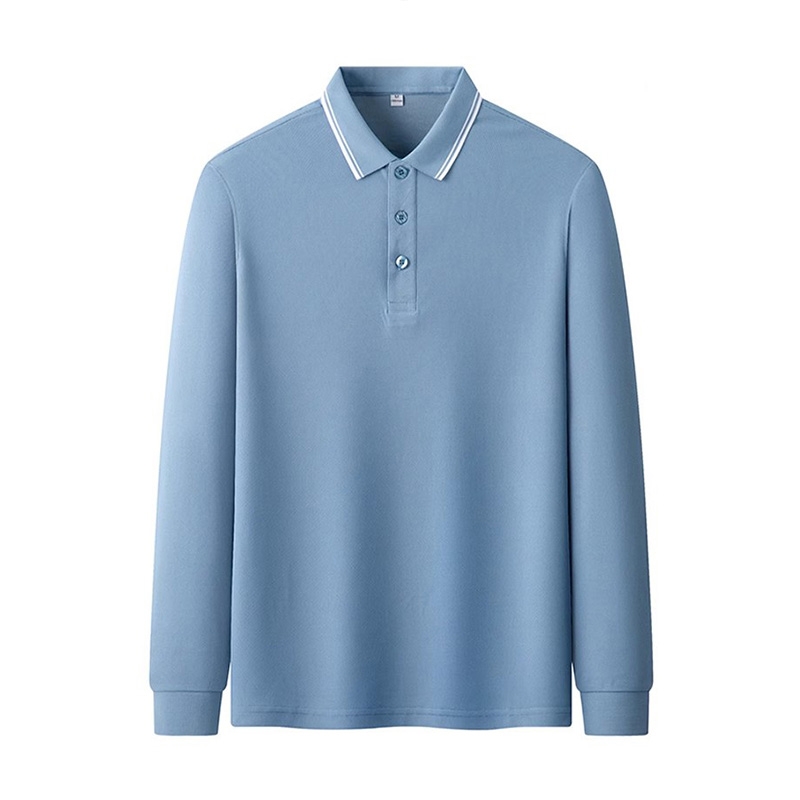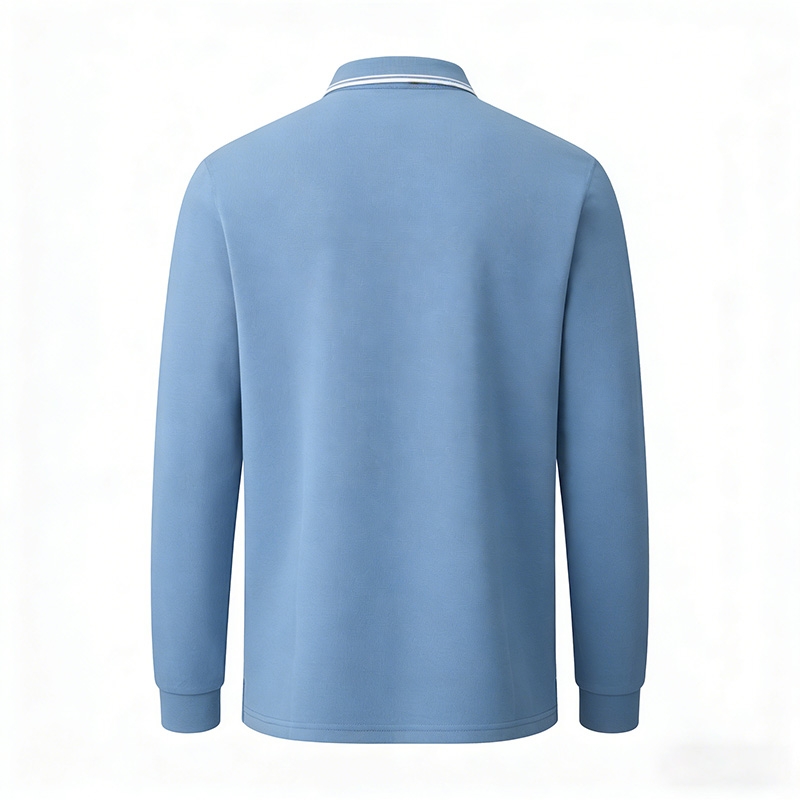 Detail Highlights: The two-button design allows flexible adjustment of collar tightness to fit different neck sizes; the long-sleeve design adapts to temperature changes in spring and autumn, suitable for wearing alone or as an inner layer; the contrast trim provides a natural visual focus, supporting custom embroidery or printing of logos, making it suitable for bulk orders such as team uniforms and business workwear.