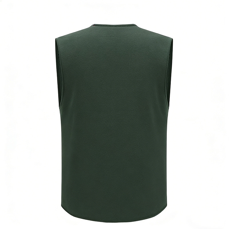 Design Style: Features a low-saturation deep army green body, a V-neck, zip closure, and a sleeveless silhouette. The design is understated and highly functional, making it ideal for outdoor tactical use, daily commuting, and urban light sports scenarios.