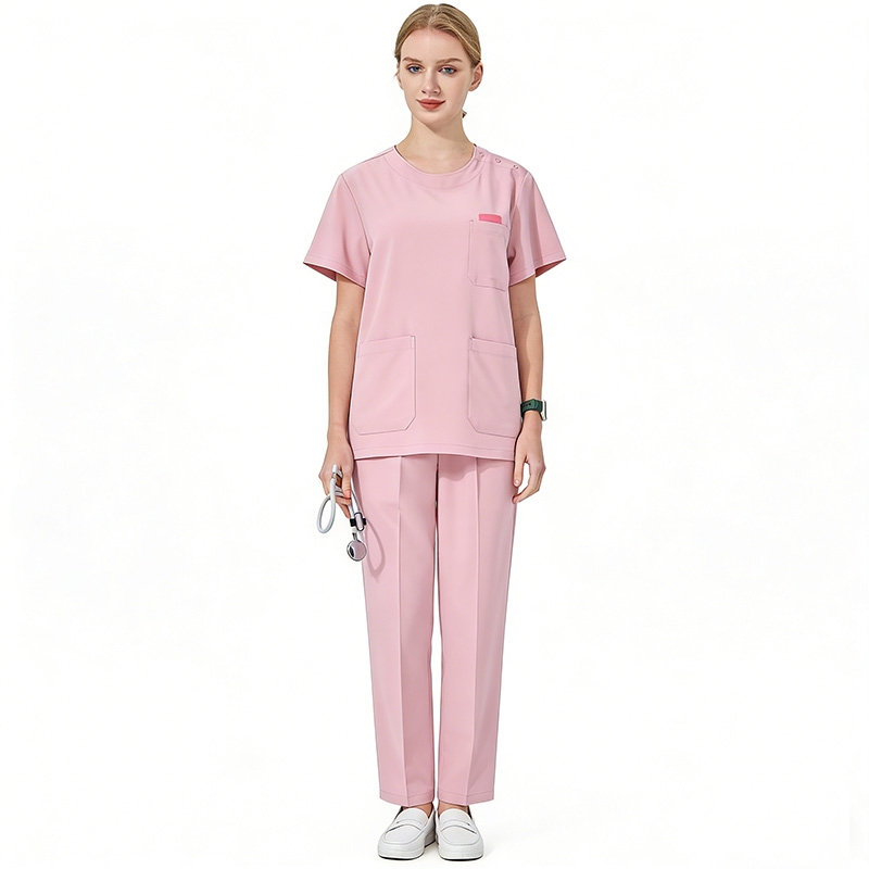 醫護粉色職業套裝,舒適短袖護理工裝,康養輔助人員專業工衣